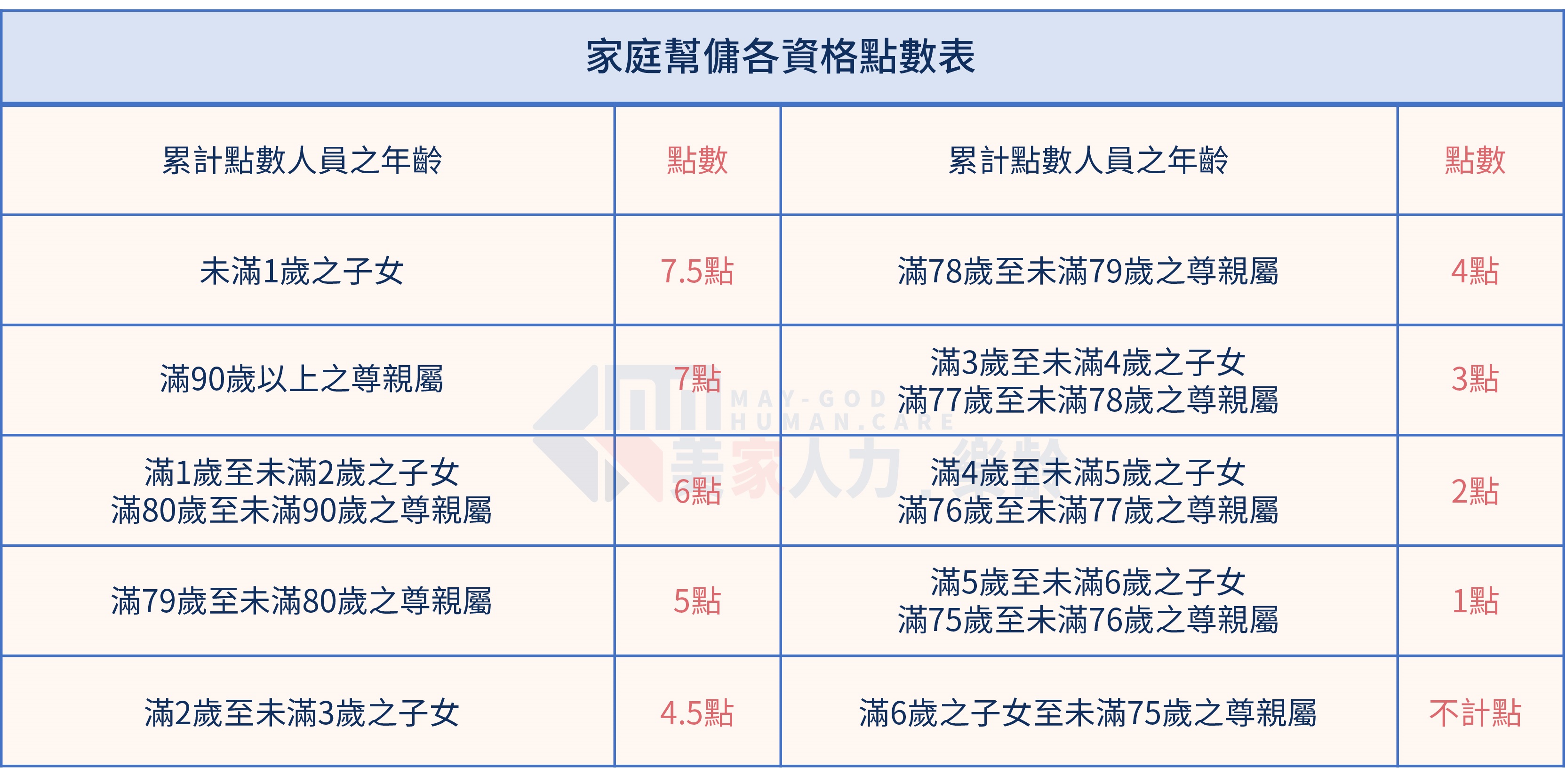 - 被看護者之直系血親‧如祖父母、父母、子女、孫子女等。